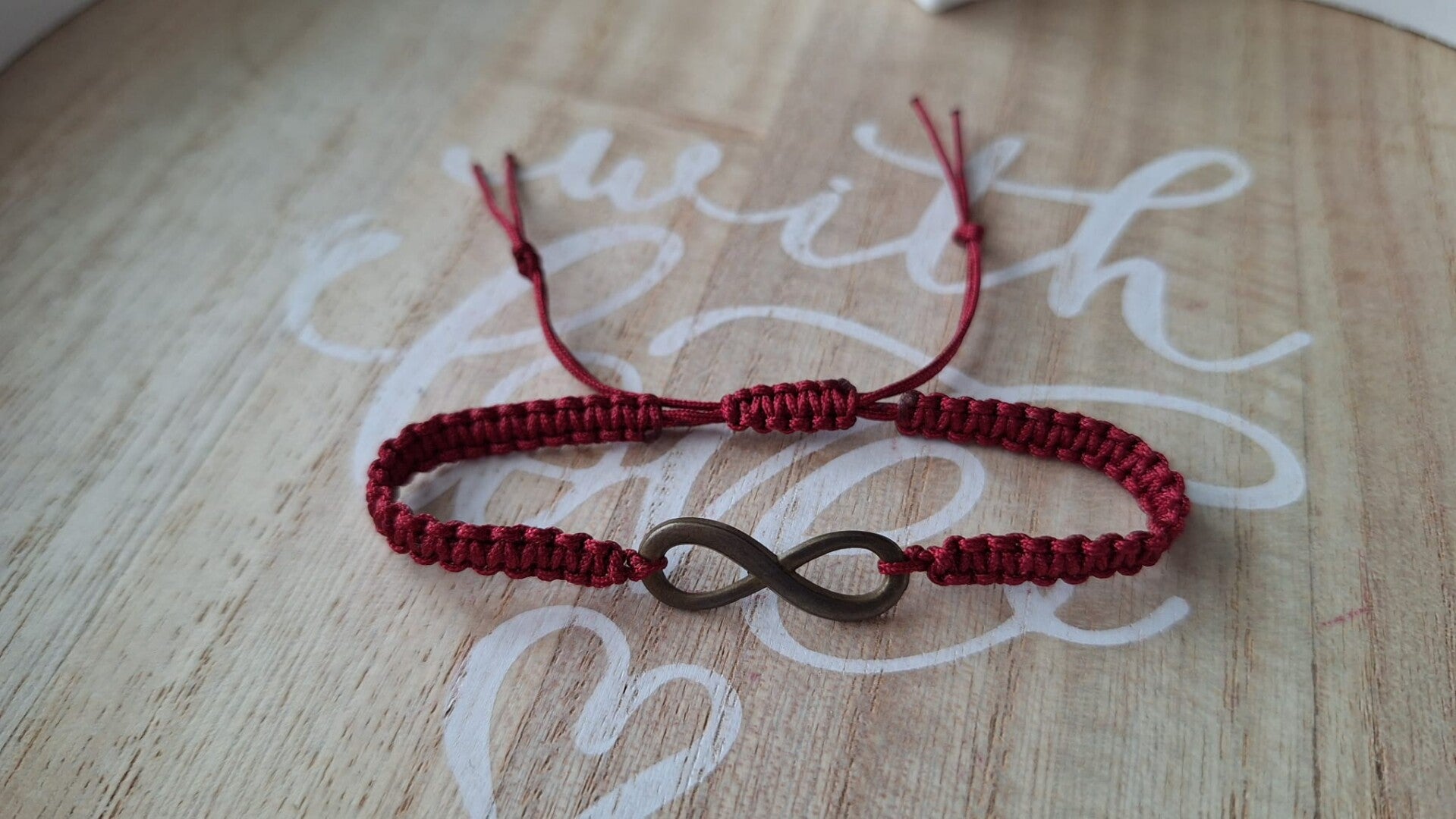 Makramee Armband dunkel rot, Unendlichkeit Anhänger