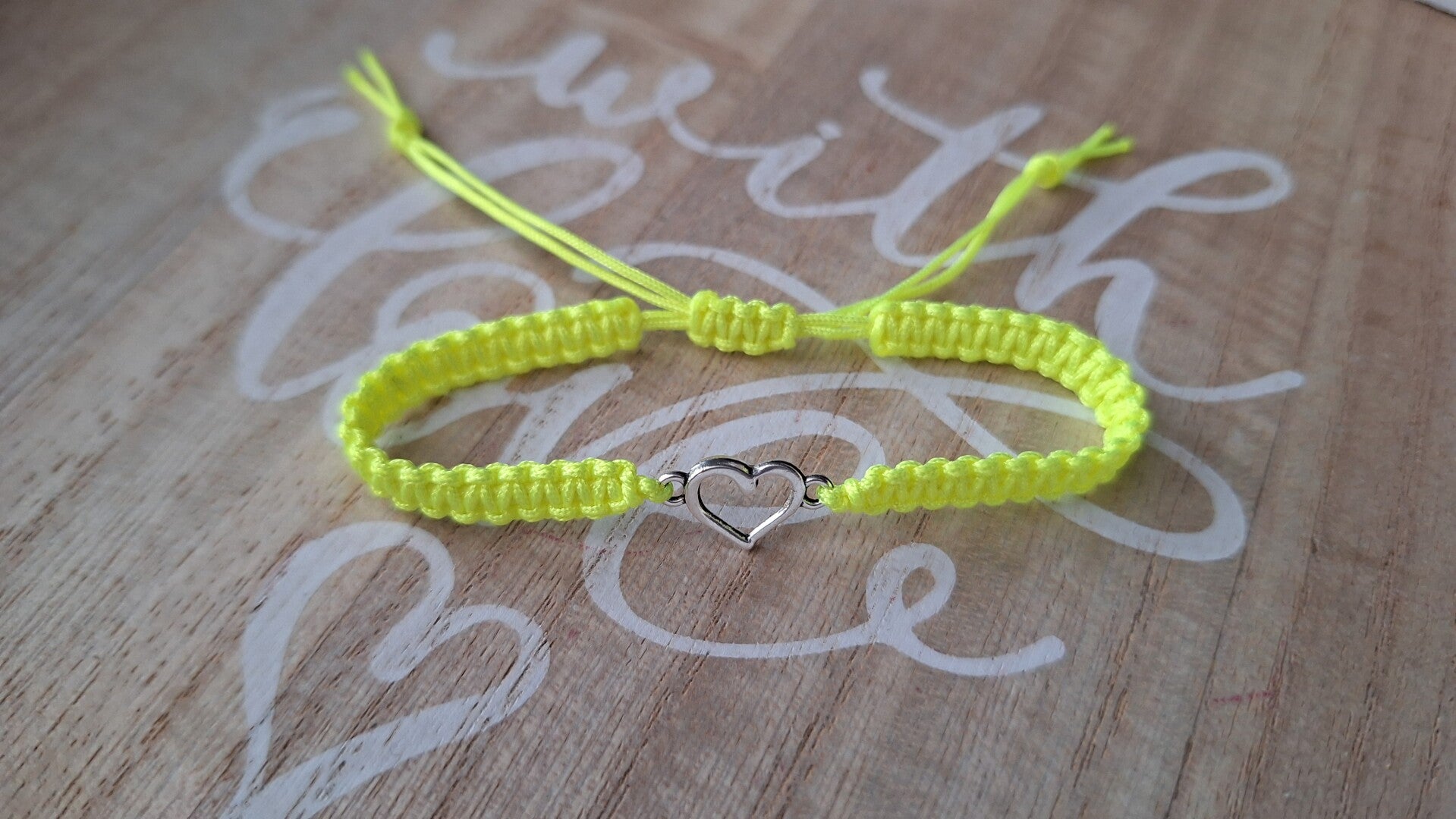 Makramee Armband neongelb, Herz silber