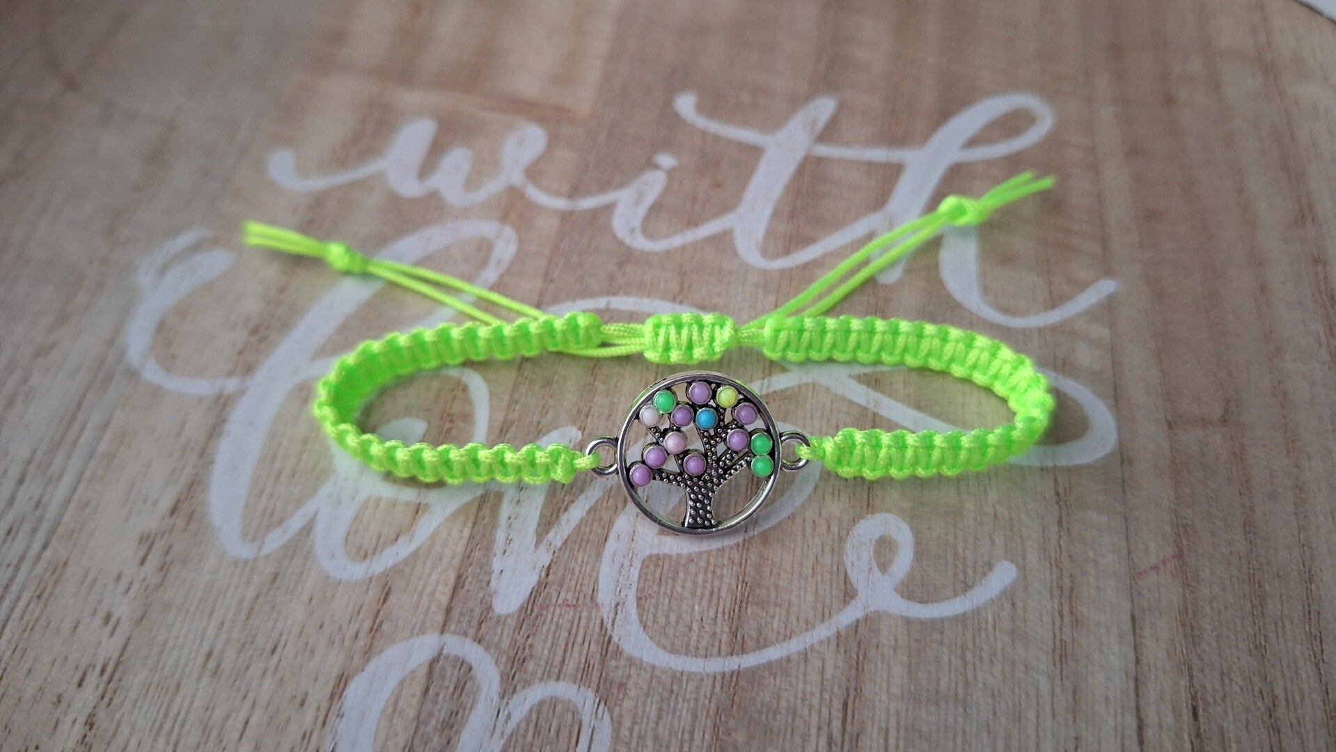 Makramee Armband neon grün, Lebensbaum