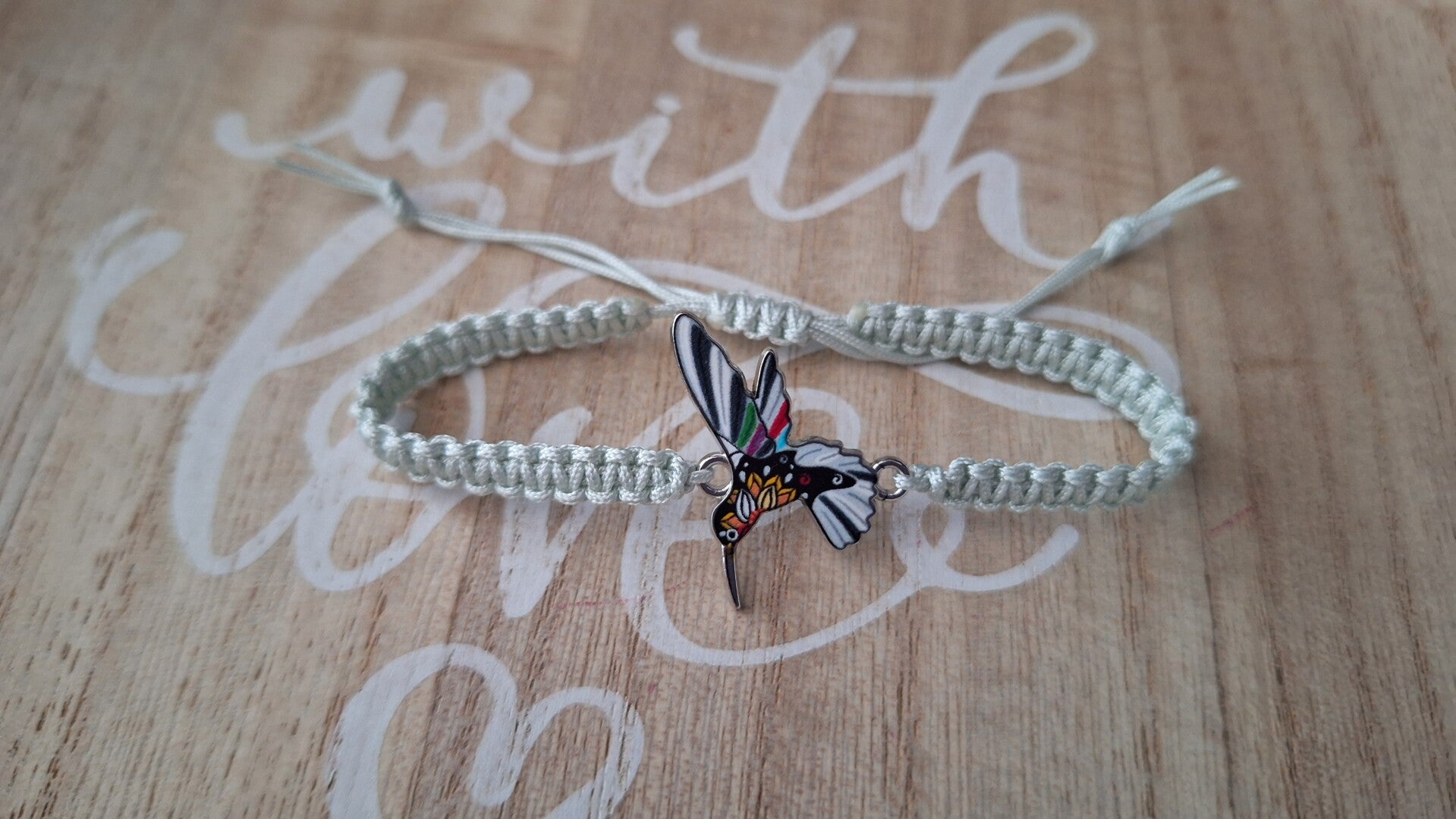 Makramee Armband grau, Kolibri